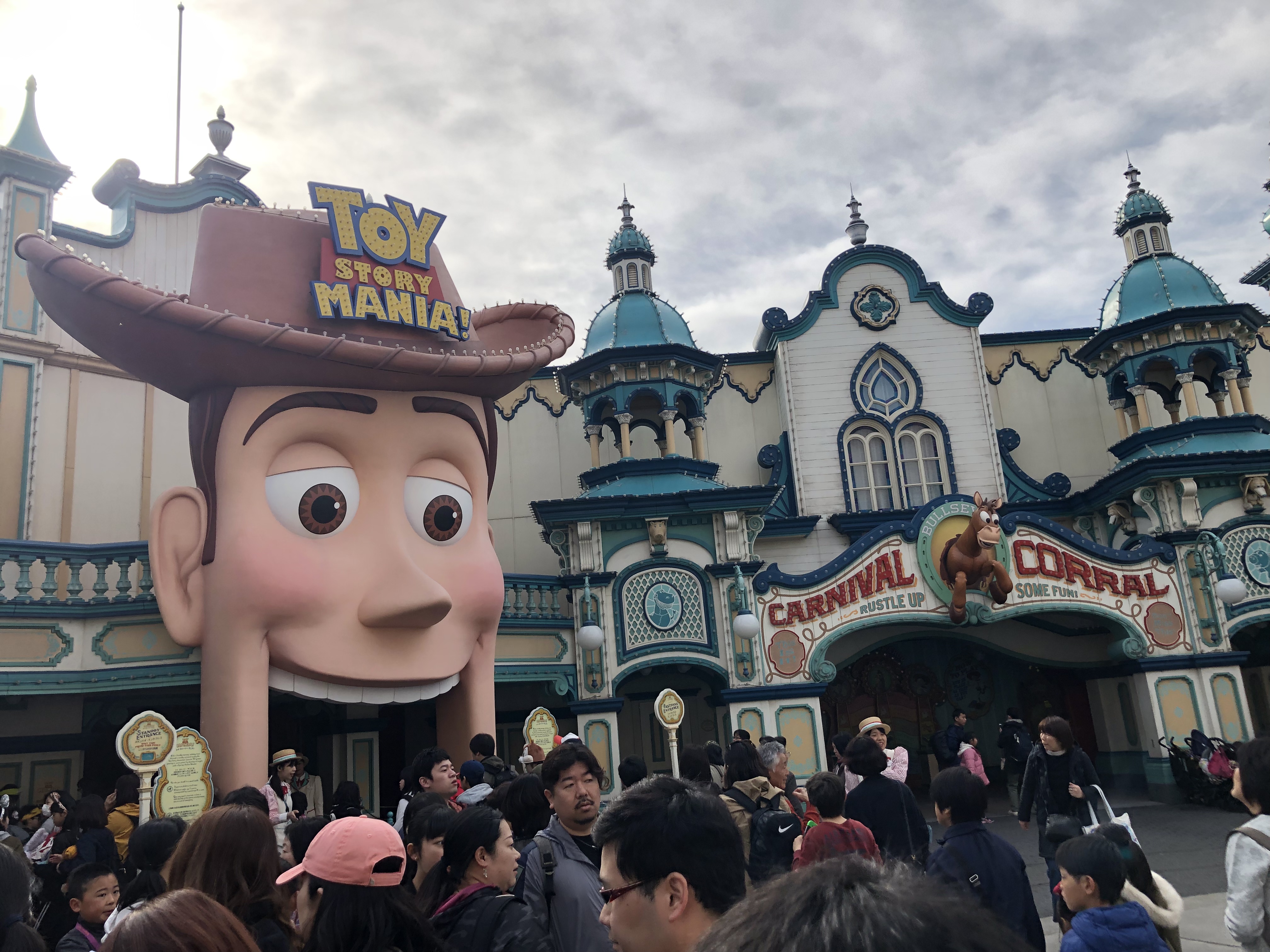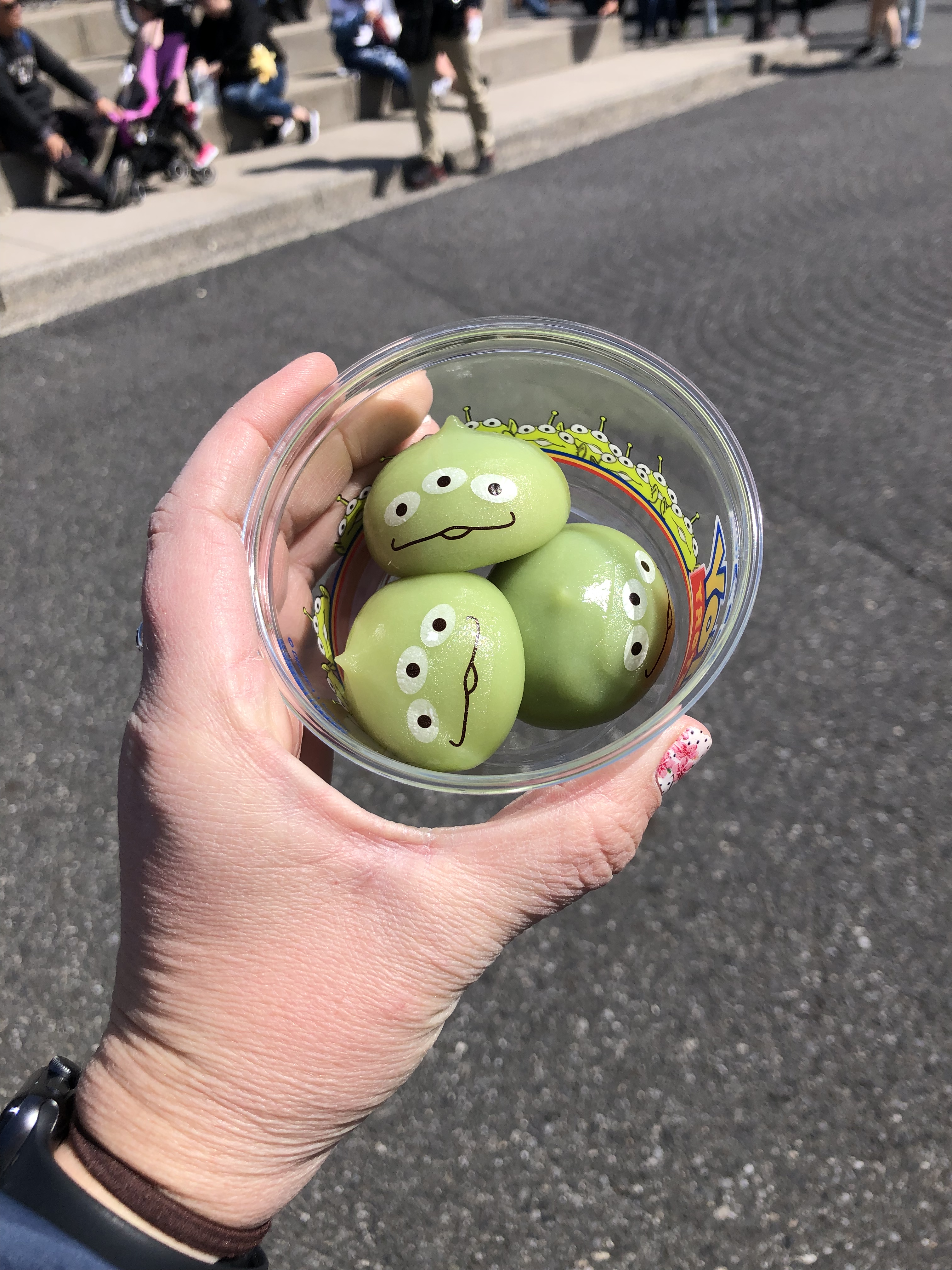 We bought some of the green alien dumplings (the strawberry filling was the yummiest) and walked past Tower of Terror before riding Toy Story Mania.